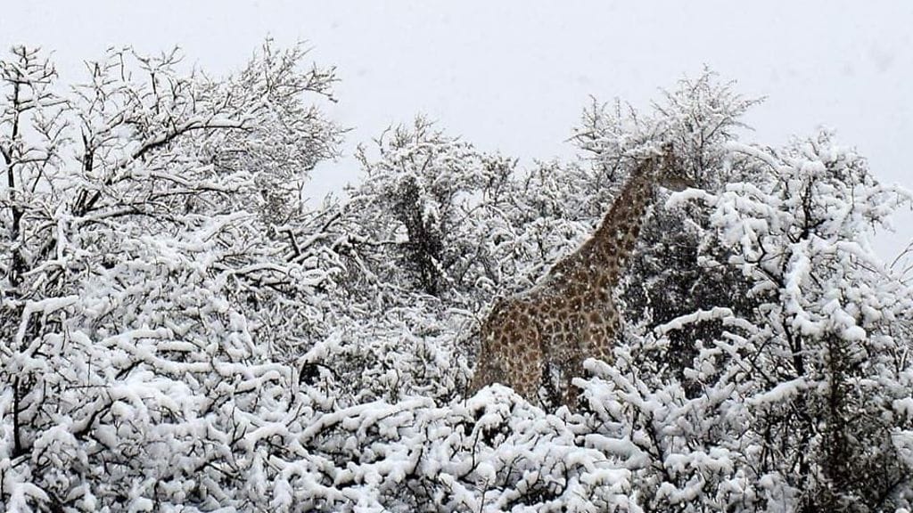 Sosiaalisessa mediassa levisi kuvia ja videoita Karoon kansallispuistossa ja niin sanotun Lumivuoren alueilla lumen keskellä kuvatuista kirahveista, antiloopeista, sarvikuonoista ja elefanteista.