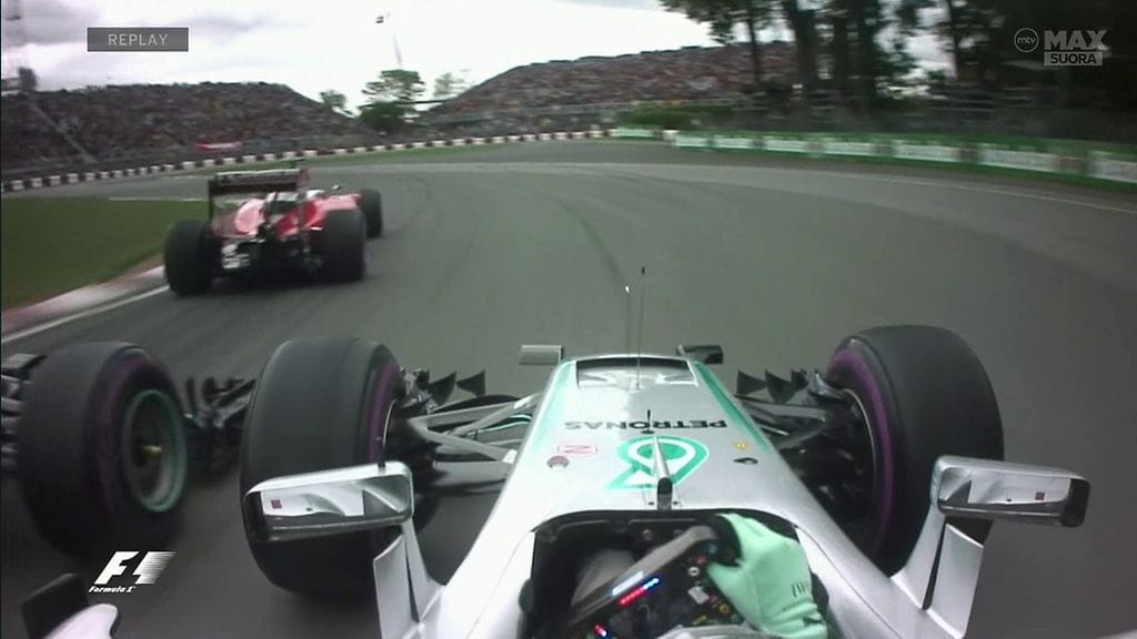 Vettel puolestaan ajautui hetken päästä mutkan läpi ja menetti johtoaan Hamiltoniin.
