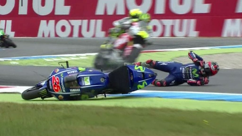 MotoGP:n MM-sarjaa johtava Yamahan Maverick Viñales romutti pyöränsä Hollannin osakilpailussa ja joutui keskeyttämään.