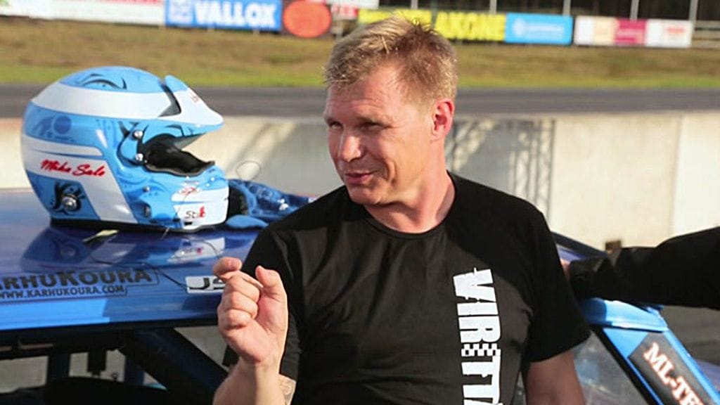 Meno on vauhdikasta, kun Mika Salo kurvaa radalle painija Ari Alasen pikkuruisella Sunbeamilla.