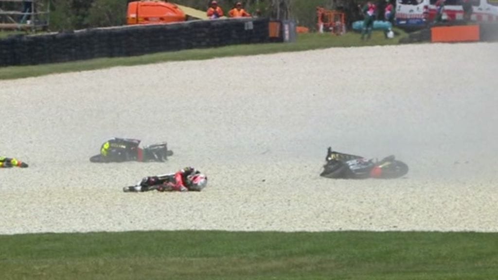 MM-sarjassa viidentenä ennen Australian osakilpailua ollut Lorenzo Dalla Porta romutti pyöränsä kaksi kierrosta myöhemmin kaatumalla dramaattisesti kärkipaikalta.