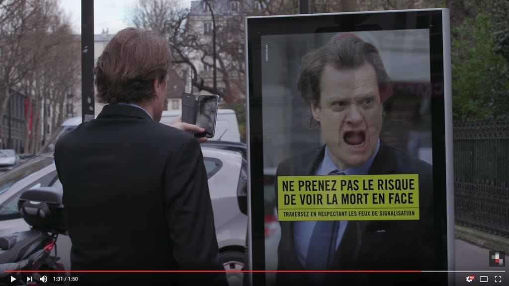 Maaliskuussa Ranskan liikenneturvallisuusviranomaiset asennuttivat Pariisin kaduille mainostauluja, joiden tarkoituksena on saada jalankulkijat ajattelemaan omaa turvallisuuttaan. Mikäli jalankulkija ylittää mainostaulun vieressä olevan suojatien punaisten valojen palaessa, taulu rääkäisee ilmoille äänen, joka muistuttaa hätäjarrutuksen tekevän auton renkaiden vinkunaa.
