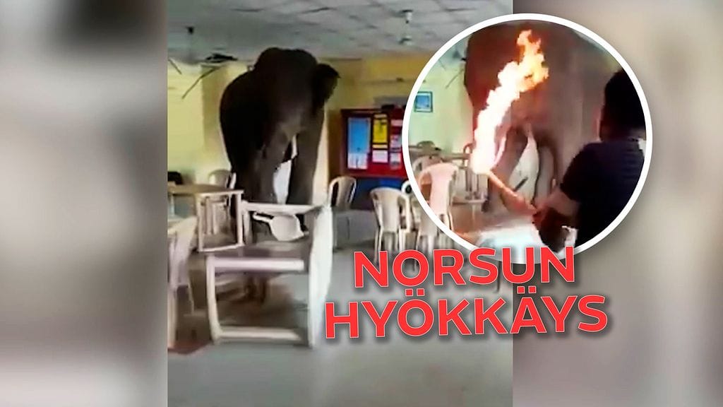 Katso ylhäällä olevalta videolta, kun pöydät lentelevät ja tulikepit viuhuvat norsun vieraillessa talon sisällä!