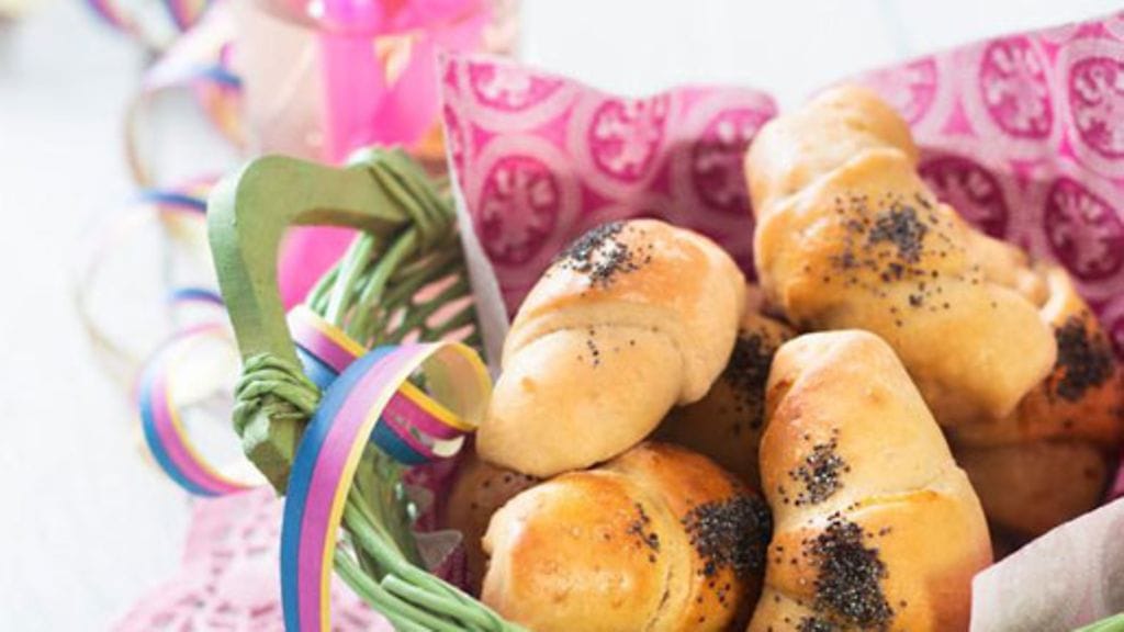 Vappuviikon kunniaksi herkutellaan täytetyillä juustosarvilla sekä lohi-tuorejuustopaloilla.