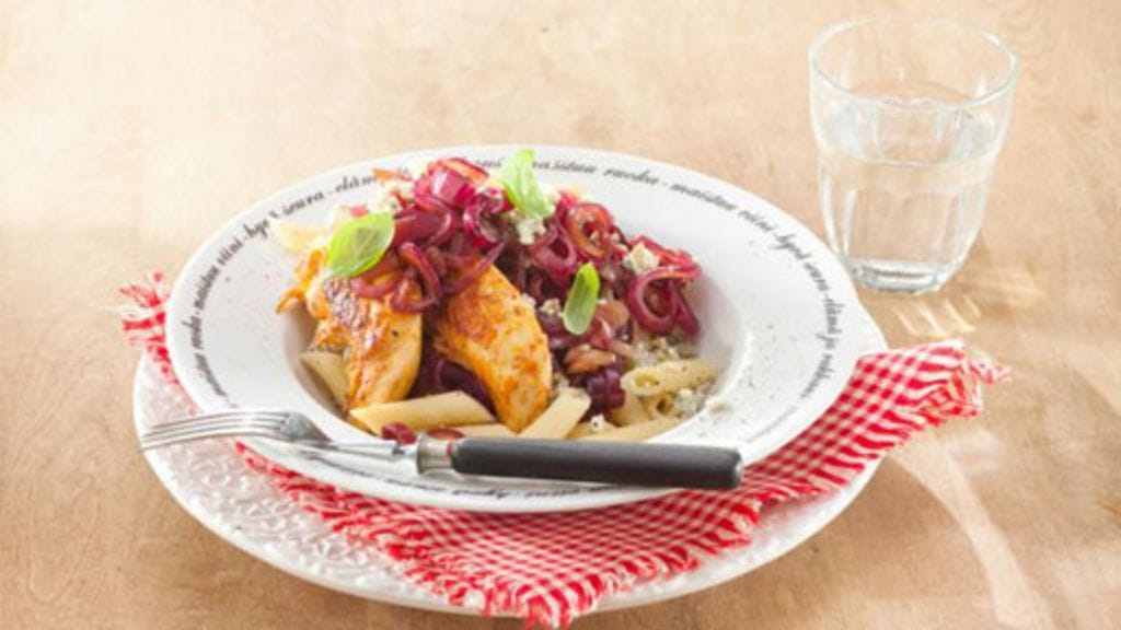 Tällä viikolla tuunataan uunimakkaraa sinihomejuustolla ja valmistetaan broileripastan seuraksi karamelisoituja sipuleita.