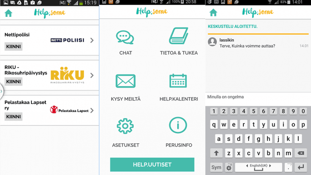 Pelastakaa Lapset ry julkaisi hiljattain Google Play -kaupassa uuden Help.some -sovelluksen, jonka se on tehnyt yhteistyössä Helsingin nettipoliisin ja Rikosuhripäivystyksen kanssa. Sovelluksen tarkoituksena on helpottaa lapsia ja nuoria ongelmatilanteissa, joita he kohtaavat internetissä.