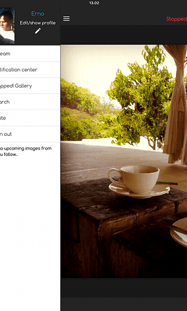 Stopped! -sovelluksen idea on siis se, että käyttäjät lataavat palveluun kuvia ja ne näkyvät sitten yhteisessä ”striimissä” kaikille. Sovelluksessa ei kerätä Facebookin tai Instagramin tavoin kuville tykkäyksiä, vaan stoppauksia eli pysäytyksiä. Jokainen kuva näkyy palvelun striimissä kaksi sekuntia ja rekisteröityneet käyttäjät voivat pysäyttää striimin haluamansa kuvan kohdalle. Käyttäjien suosiota mitataan näin ollen pysäytyksien kautta.