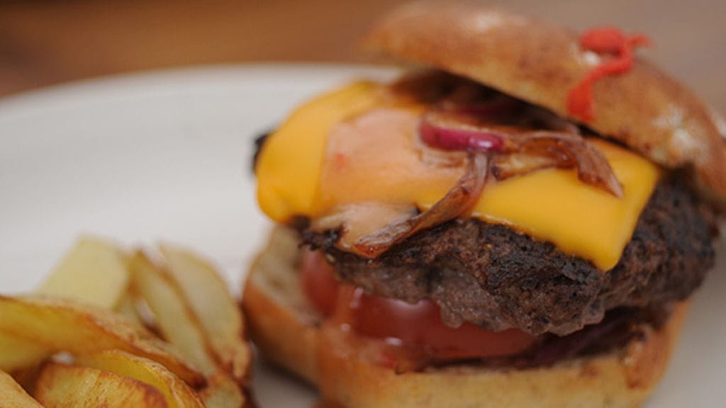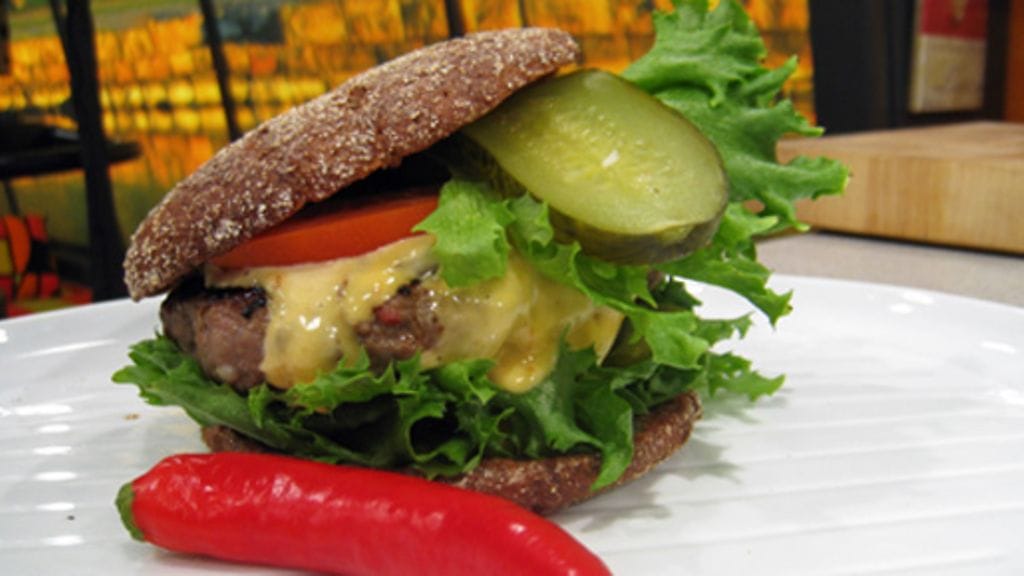 Sami Garam jauhaa itse naudan jauhelihan lihamyllyssä. Lihasta valmistuu herkullisia ruishampurilaisia. Valmista hampurilaiskastike sekoittamalla majoneesia ja chilikastiketta.