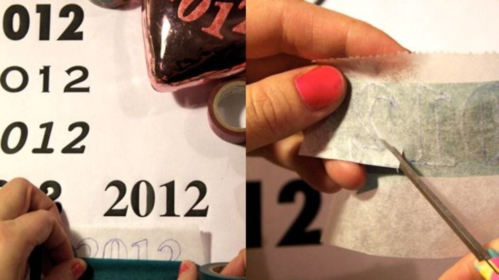 Pallot on helppo numeroida teipillä. Japanilainen maalarinteippi eli kuviollinen washi-teippi irtoaa helposti poiskin, jos niin haluaa. Numerot voi tehdä myös hopeateipillä, värikkäillä maalarinteipeillä tai reippaan raidallisilla sähköteipeillä. Perustylsän maalarinteipinkin voi tussittaa hehkeämmällä sävyllä vuosipallon askartelua varten.