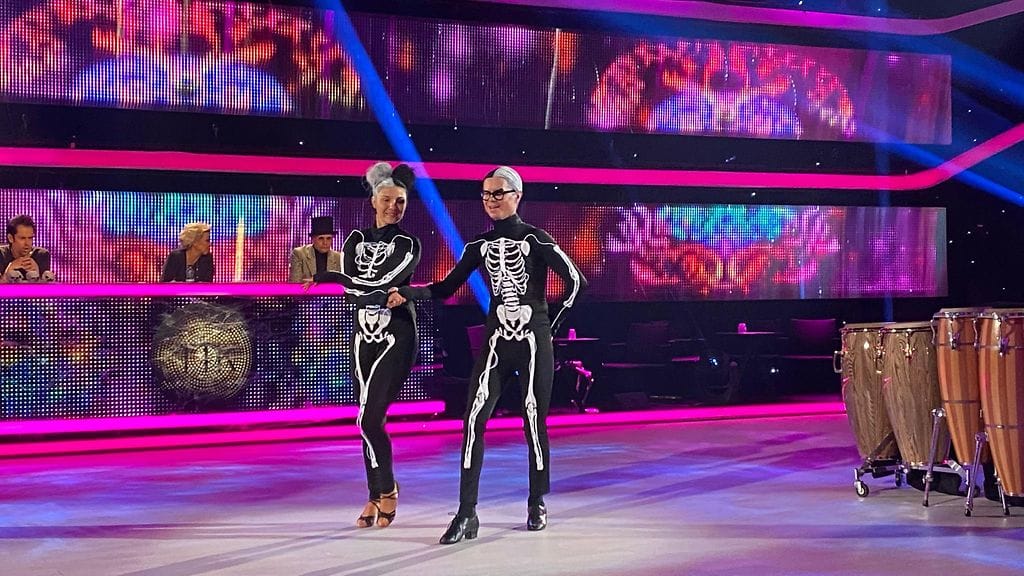 Muotitoimittaja Sami Sykkö esitti salsan tanssiopettaja Ansku Bergströmin kanssa upeissa luurankoasuissa. Viime viikolla pari sai kaikkien yllätykseksi täydet pisteet tuomaristolta.