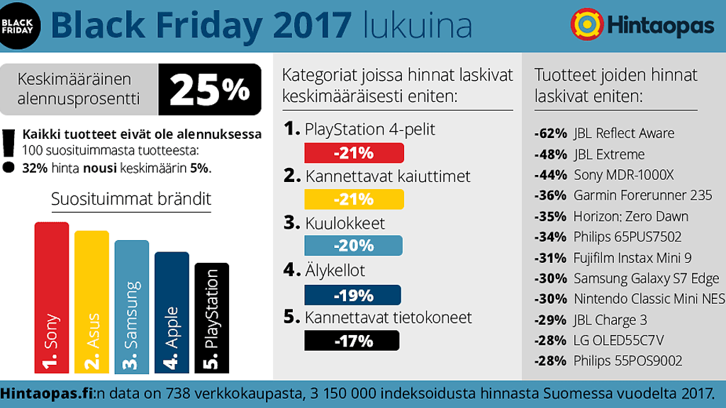 Maailman verkkokaupoissa tehdään jälleen isoja myyntejä, kun tällä viikolla vietetään niin sanottua Black Fridayta. Etenkin elektroniikan puolelta saattaa löytyä hyviä alennuksia, mutta tarjousten joukossa voi olla myös yllätyksiä. Näiden viiden vinkin avulla selviät alennushuumasta ja teet järkeviä ostopäätöksiä.