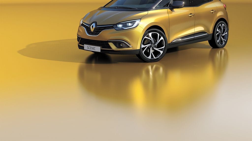 Uusi Scenic on saanut muotoihinsa samaa tyyliä kuin muissa Ranskalaisvalmistajan tuotteissa viime aikoina nähty. Keulan ilmettä hallitsee iso Renault-merkki ja ajovaloumpioiden LED-nauhat tekevät C-muotoisen linjan. Etenkin etuylitys on aikaisempaa lyhyempi ja raideleveyttä on kasvatettu sekä edessä että takana. Tämän lisäksi auton maavaraa on kasvatettu ja korkean kylkilinjan kanssa se luo autoon aavistuksen crossover-tyyliä.