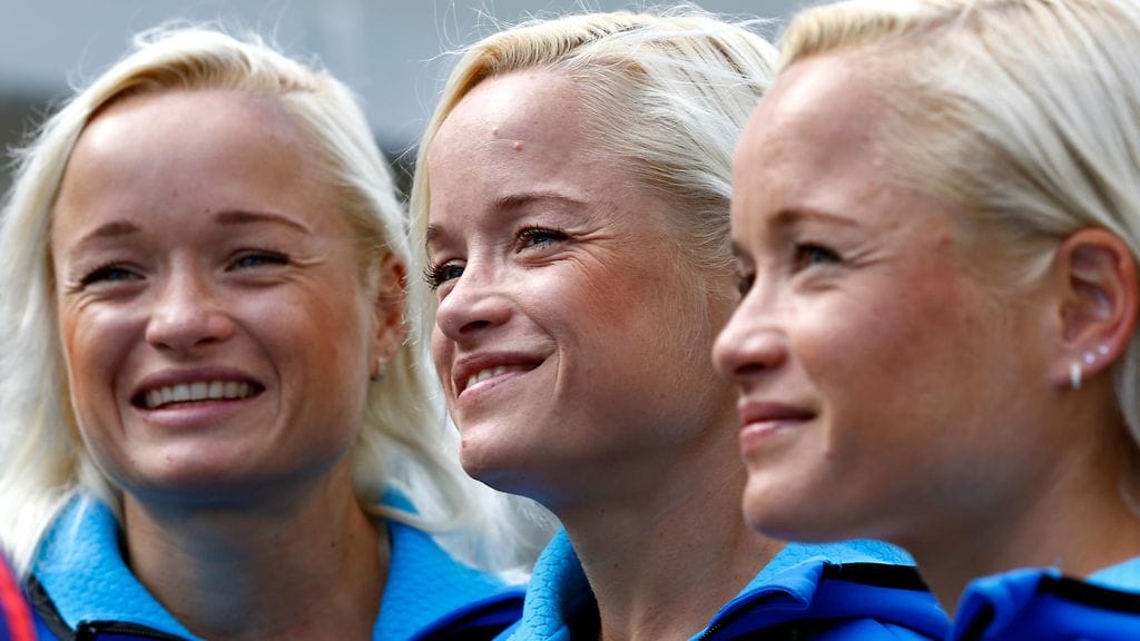 Virolaiset identtiset kolmoset Leila, Liina ja Lily Luik keräävät huomiota Rion olympiakylässä.