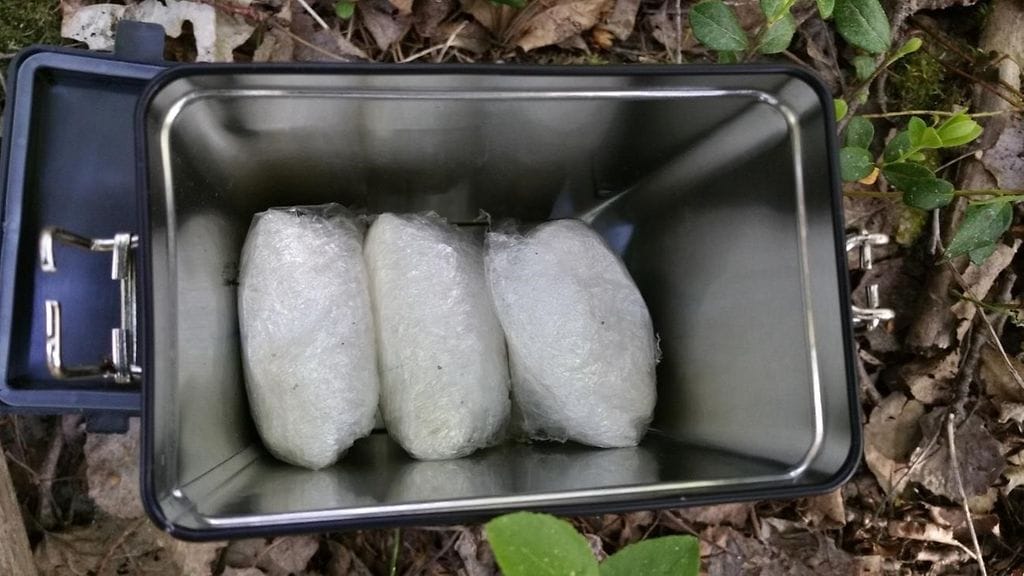 Amfetamiinin myyjä oli kätkenyt huumausaineita useisiin maastokätköihin. Huumepakkaukset oli pakattu kahvipurkkeihin.