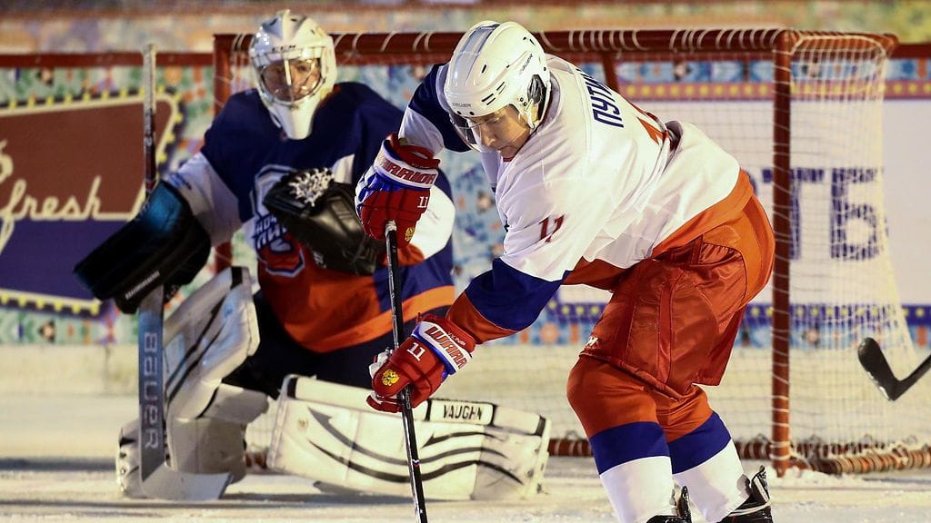 Venäjän presidentti Vladimir Putin pääsi jälleen nauttimaan vapaista maalipaikoista astuttuaan kiekkokaukaloon Moskovan Punaisella torilla.