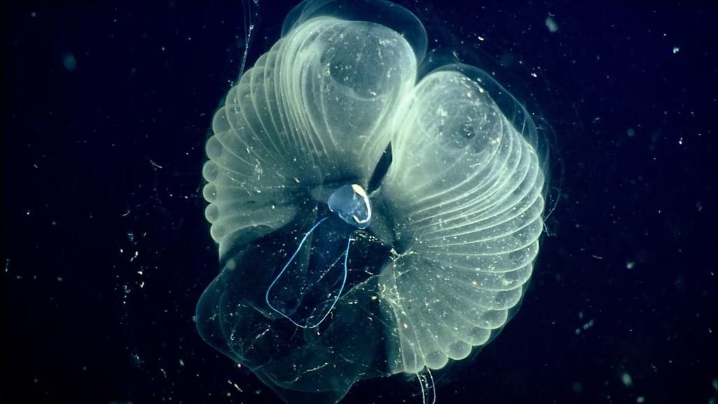 Alle pikkurillin pään kokoinen jättipyrstökäs elää valtamerten yläosissa. Se rakentaa joka päivä itselleen limasta asumuksen, jonka läpi se siivilöi vettä ja vangitsee veden mukana tulevat ravinteet ja kappaleet sisäänsä. Kun lima-asumuksesta tulee liian raskas, hylkää pyrstökäs rakennelmansa ja antaa sen vajota meren pohjaan.