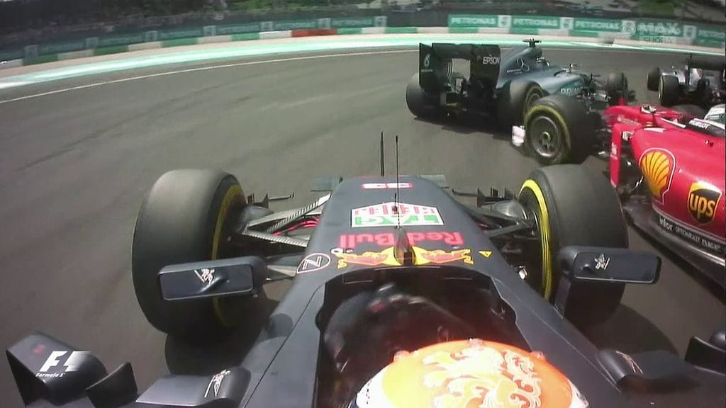 Rosberg ja Verstappen olivat avausmutkassa osallisina kolarissa. Ferrarin Sebastian Vettel syöksyi rohkeasti tiukkaan mutkaan ja osui Verstappeniin. Sen seurauksena Vettelin auto ponnahti suoraan Rosbergin takarenkaaseen. Rosberg pyörähti ja Vettel joutui keskeyttämään.