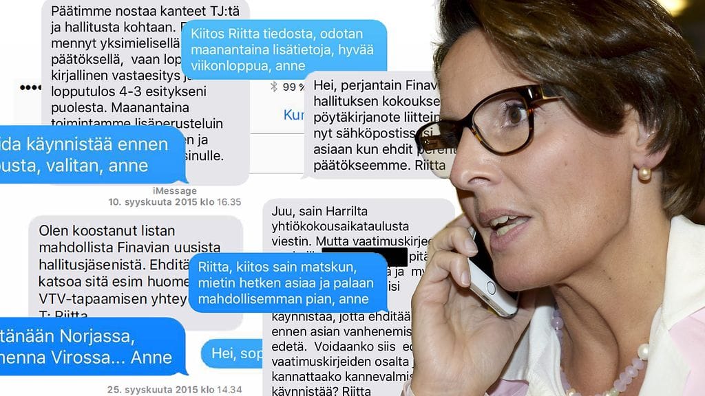 Ministeriö julkisti eilen sen ja Finavian hallituksen ex-puheenjohtajan Riitta Tiuraniemen välistä viestinvaihtoa. Tekstiviestiaineisto ei ollut Männikön mukaan tarkastusviraston käytössä, kun se teki laillisuustarkastusta, joka julkistettiin kesäkuussa.