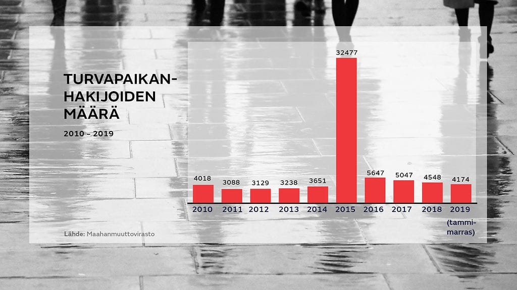 Viime vuosikymmenen aikana eli vuosina 2010-2019 Suomeen saapui yhteensä yli 69 000 turvapaikanhakijaa.