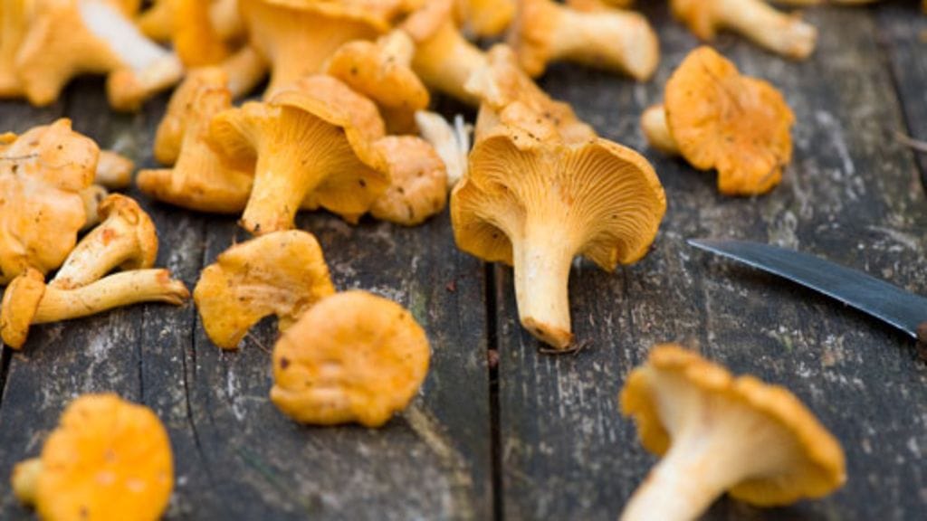 - Putsaa ja kuivaa kantarellit hyvin. Lämmitä pannu todella kuumaksi ja lisää sienet. Lisää hetkenpäästä voi ja paista vielä vähän aikaa. Valuta sienet siivilässä ja mausta.