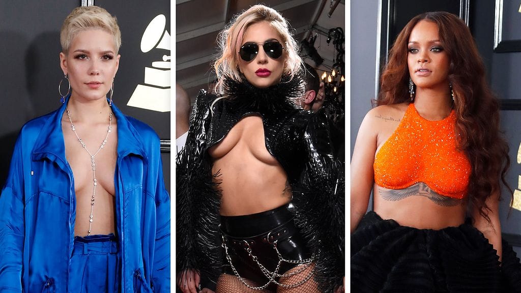 Esimerkiksi Lady Gagan nahkabolero ja minishortsit käänsivät katseet ja laulajakaunotar Halsey edusti avonaisessa pusakassa. Tyyli-ikoni Rihanna sen sijaan paljasti rintojensa alla olevan tatuoinnin kaksiosaisessa mekossaan.