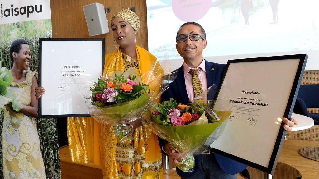 Suomen Pakolaisapu on valinnut vuoden pakolaisnaiseksi helsinkiläisen perhetyöntekijän Farhia Abdin ja vuoden pakolaismieheksi raisiolaisen asiointitulkin Kordnejad Ebrahimin.