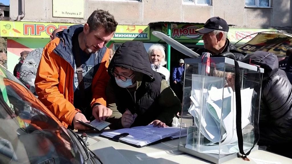Eri puolilla Ukrainaa on järjestetty niin sanottuja "kansanäänestyksiä" alueiden liittymisestä Venäjään. Myös Venäjän miehittämässä satamakaupungissa Mariupolissa ihmisiä osallistuu äänestykseen.