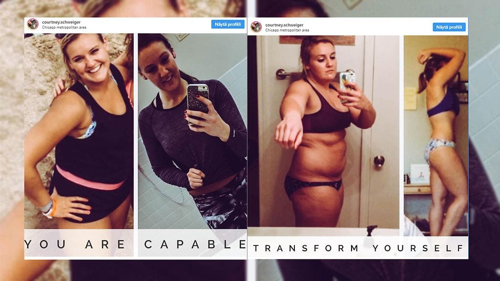 Courtney Schweiger oli aktiivinen nuori nainen, mutta siitä huolimatta hän painoi jopa 97 kiloa. Ongelma ei ollutkaan liikunnan puolella, vaan ruokailussa.