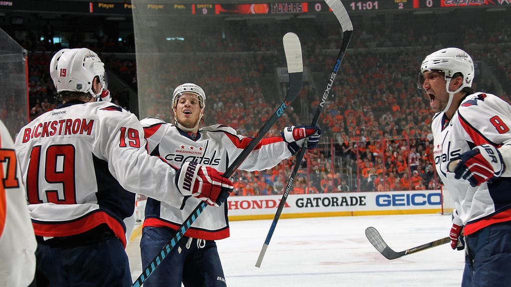 Flyers ehti säikäyttää runkosarjan voittajia, sillä se kiri sarjassa 0-3-tappioasemista 2-3-tilanteeseen, mutta Capitals punnersi sunnuntaina ratkaisevan neljännen kiinnityksen. Voittomaalin laukoi ruotsalaistähti Nicklas Bäckström toisessa erässä.