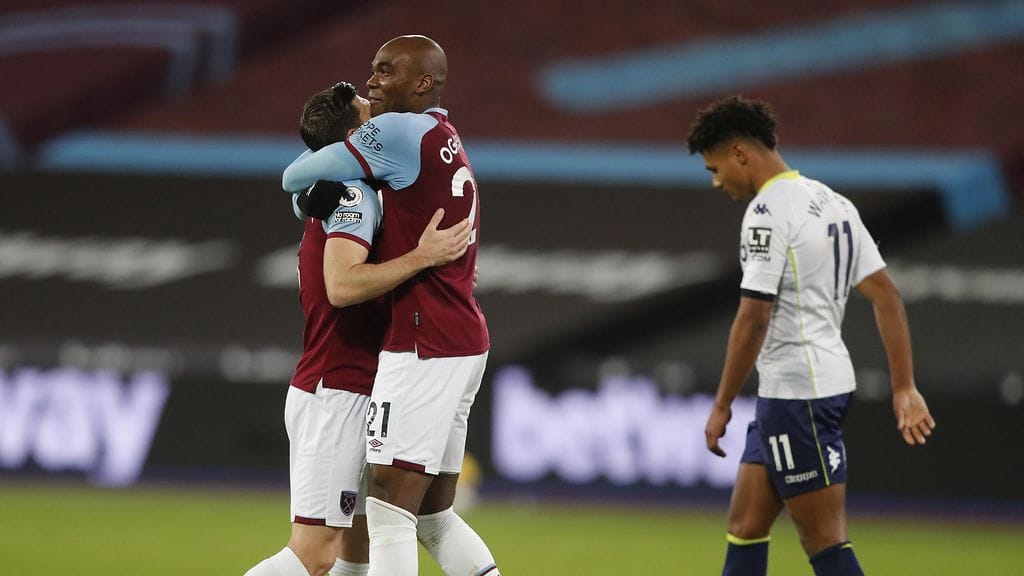 Lontoolaisseura West Ham nousi jalkapallon Englannin Valioliigassa viidenneksi, kun se kaatoi Aston Villan Lontoon Olympiastadionilla 2–1.