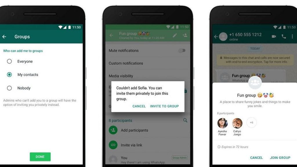WhatsAppin yksityisyysasetuksiin on tulossa uusi Ryhmät-valinta, joka mahdollistaa paremman hallinnan siitä, kenellä on oikeus lisätä itseä ryhmiin, jos kenelläkään. Valinnan alla on kolme vaihtoehtoa: Ei kukaan, Yhteystiedot ja Kaikki.