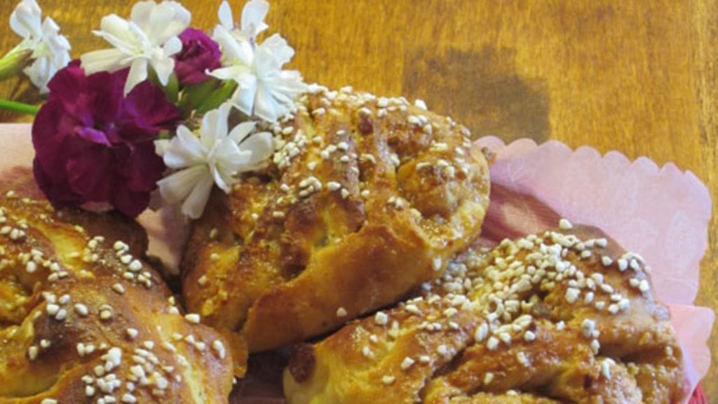 Leikkaa rullasta vinoja paloja (kolmioita) ja paina kapeimmasta leikkuureunasta keskeltä alas peukalolla niin, että pullaan muodostuu korvat. Anna kohota kaksinkertaisiksi lämpimässä paikassa. Voitele munalla, ripottele päälle raesokeria. Paista 225-asteisen uunin keskitasolla n. 10 min kauniin värisiksi.