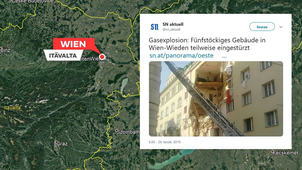 Itävallan Wienissä on sattunut räjähdys, joka vaurioitti kerrostaloa pahasti.