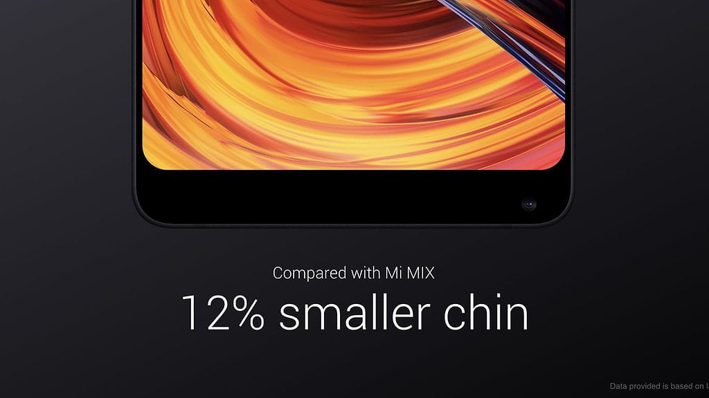 Etukamera, tarkkuudeltaan 5 megapikseliä, löytyy edelleen Mi MIX 2:sta alakulmasta Mi MIXin tavoin. Näytön alareunus, ”leuka”, on nyt 12 prosenttia alkuperäistä pienempi. Uutuudessa näytön kuvasuhde on nyt 18:9, kun alkuperäisen MIXin näyttö on kuvasuhteeltaan 17:9. Näytön koko Mi MIX 2:ssa on nyt 5,99 tuumaa ja tarkkuus 2160×1080 pikseliä.