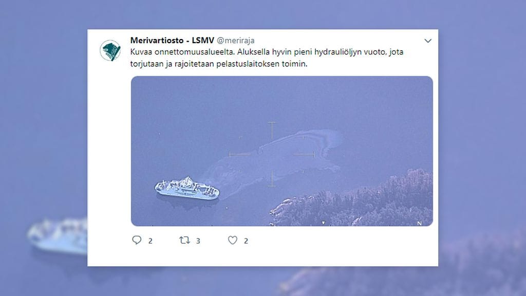 Aluksella oli hyvin pieni hydrauliöljyn vuoto, jota pelastuslaitos torjuu ja rajoittaa parhaillaan.