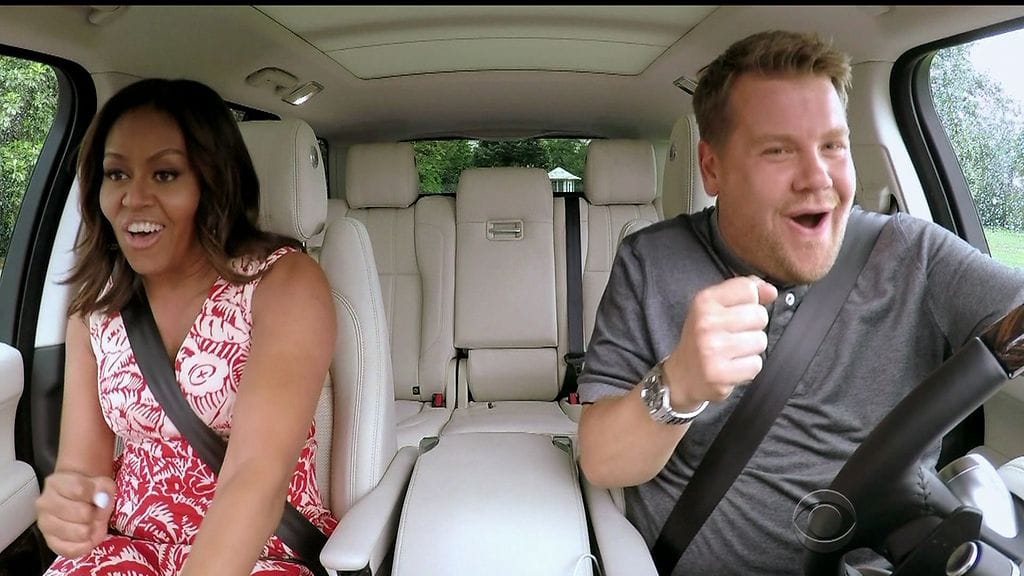 Yhdysvaltain presidentin vaimo Michelle Obama loikkasi James Cordenin kyytiin ja samalla syntyi eeppinen kimppakyytikaraoke-video.