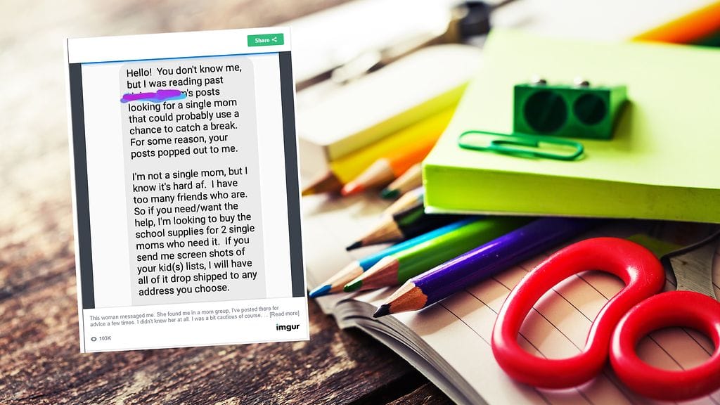 Amerikkalainen yksinhuoltajaäiti halusi jakaa tarinan yllättävästä avuntarjouksesta kannustaakseen muita hyviin tekoihin. Tarinasta kertovat Someecards ja BoredPanda.