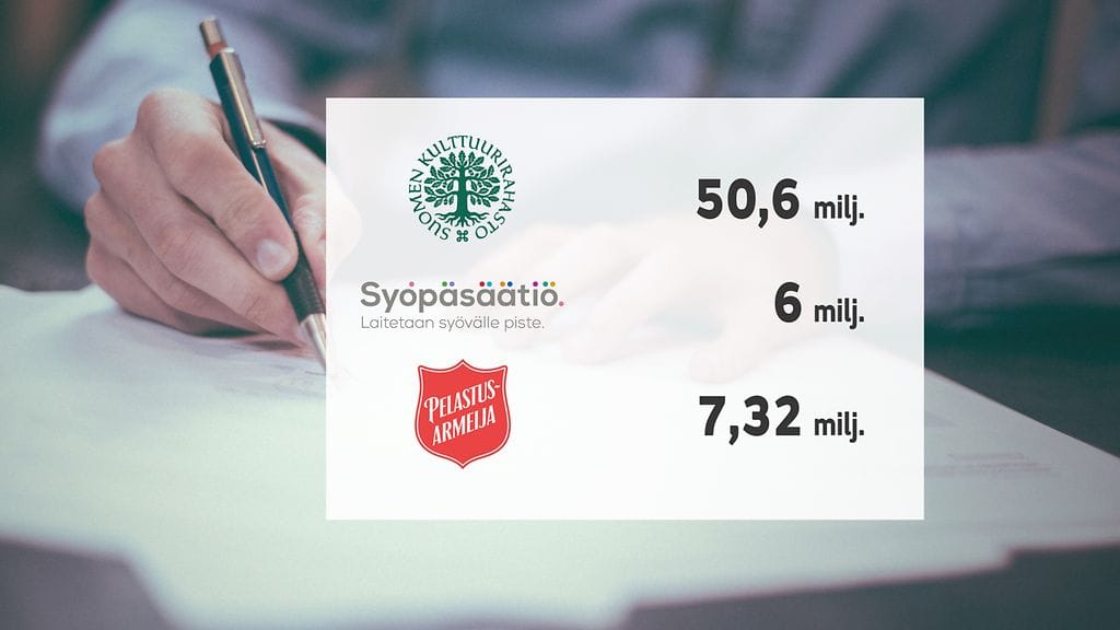 Suomalaiset testamenttaavat vuosittain miljoonia euroja erilaisille yleishyödyllisille säätiöille ja järjestöille. Testamenttilahjoitusten kärjessä on Suomen kulttuurirahasto, joka on vastaanottanut viimeisten viiden vuoden aikana yli 50 miljoonaa euroa, kertoo MTV:n Viiden jälkeen -ohjelma.