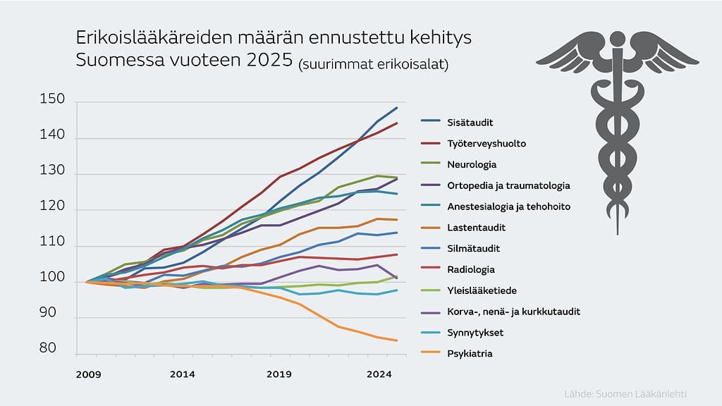 Lehdessä professori Olli Meretoja arvioi selvityksessään, että Suomessa on 300 psykiatria vähemmän vuonna 2025 kuin tämän vuosikymmenen alussa, vaikka professorin arvion mukaan erikoislääkäreitä tarvittaisiin lisää yli 300.