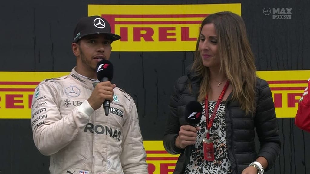 Hamilton sai palkintopallilla yleisöltä rajun buuauskonsertin. Kannattajien reagointi oli niin voimakas, ettei brittikuskin lopun haastattelusta meinannut tulla mitään.