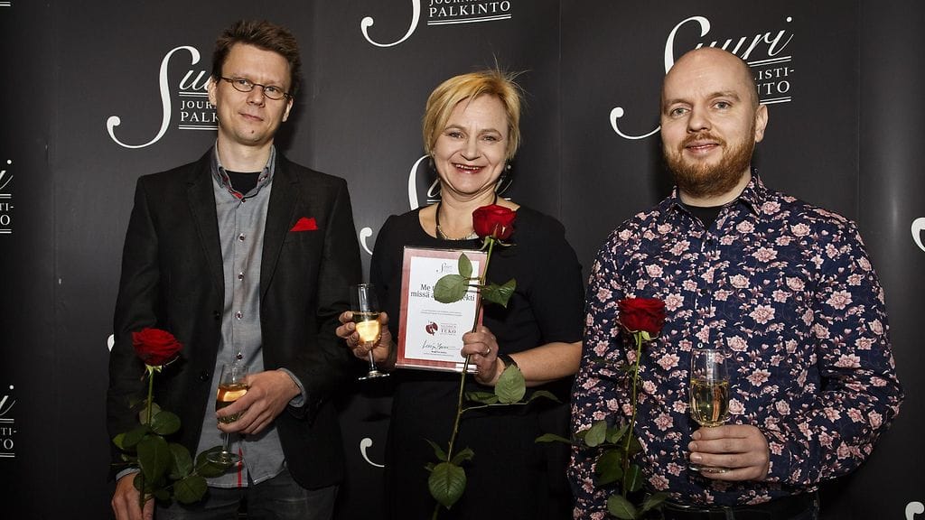 Palkinnon saivat Ylen Hannele Valkeeniemi, Aki Kekäläinen ja Jarkko Ryynänen.