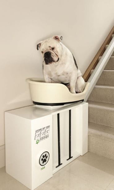 Kaikkea ne keksivätkin! Briteissä on kehitelty liikakiloista kärsiville koirille oma hissi, joka auttaa ylipainoisia koiruuksia pääsemään portaat ylös ja alas nappia omalla tassulla painamalla.