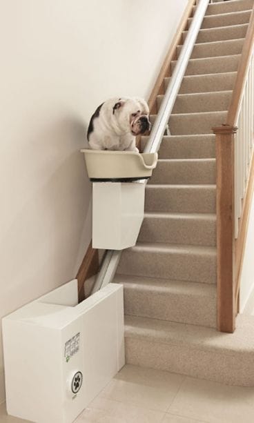 Ylipainoisille koirille on suunniteltu hissi, joka auttaa painonsa kanssa tuskailevia koiria pääsemään portaat ylös.