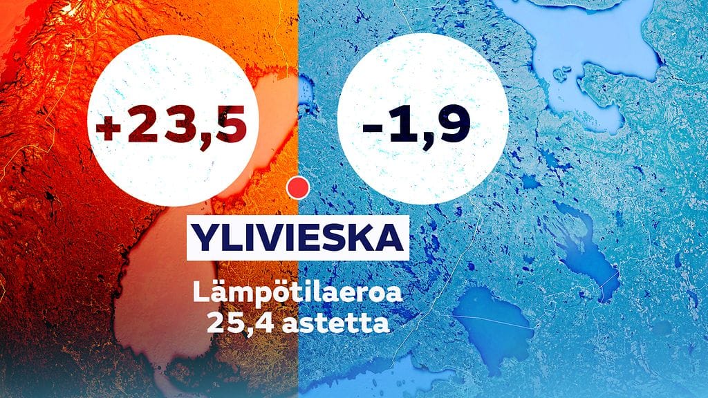 Ylivieskassa on tänään ollut maan suurin lämpötilamuutos yön ja päivän välillä. Samalla Ylivieskassa rikottiin myös kevään lämpöennätys.