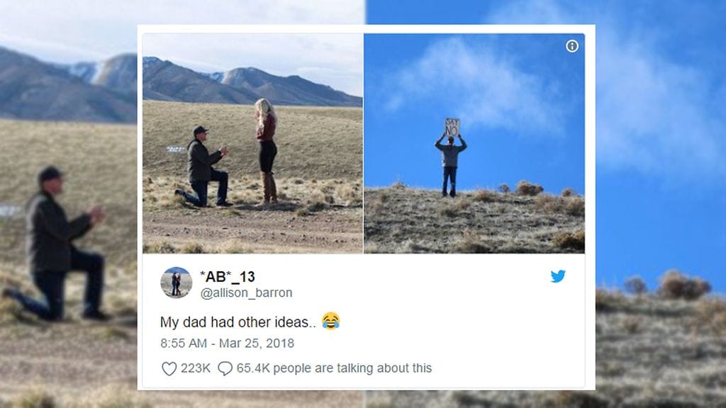 Romanttisessa tilanteessa oli mukana pariskunnan lisäksi heidän koiransa – mutta myös Allisonin isä. Isä päätti juhlia tilannetta omalla tavallaan ja tekikin käytännön pilan tuoreelle kihlaparille.