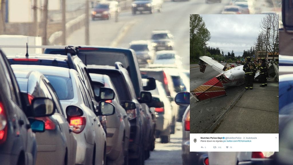 Autoilijat joutuivat osaksi kauhistuttavaa lento-onnettomuutta Seattlen lähellä sijaitsevassa pikkukaupungissa, kun pienkone joutui laskeutumaan valtatielle.