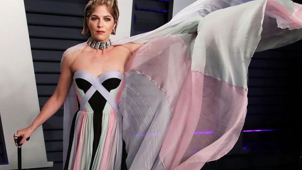 Näyttelijä Selma Blair yllätti näyttäytymällä Oscar-gaalan jatkoilla kävelykepin kanssa.