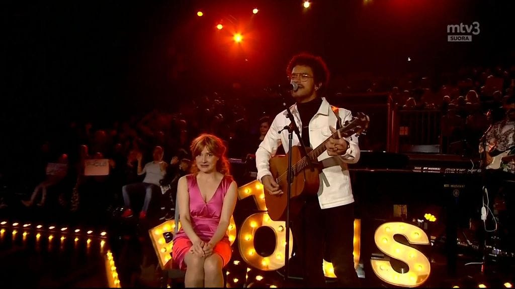 Yhtäkkiä viereisessä pöydässä Pete Parkkonen kääntyy katsomaan tapahtumia, erityisesti Raijaa. Parkkonen kantaa Raijan lavalle mukanaan ja esittää uuden singlensä Voimaa ja valoa.