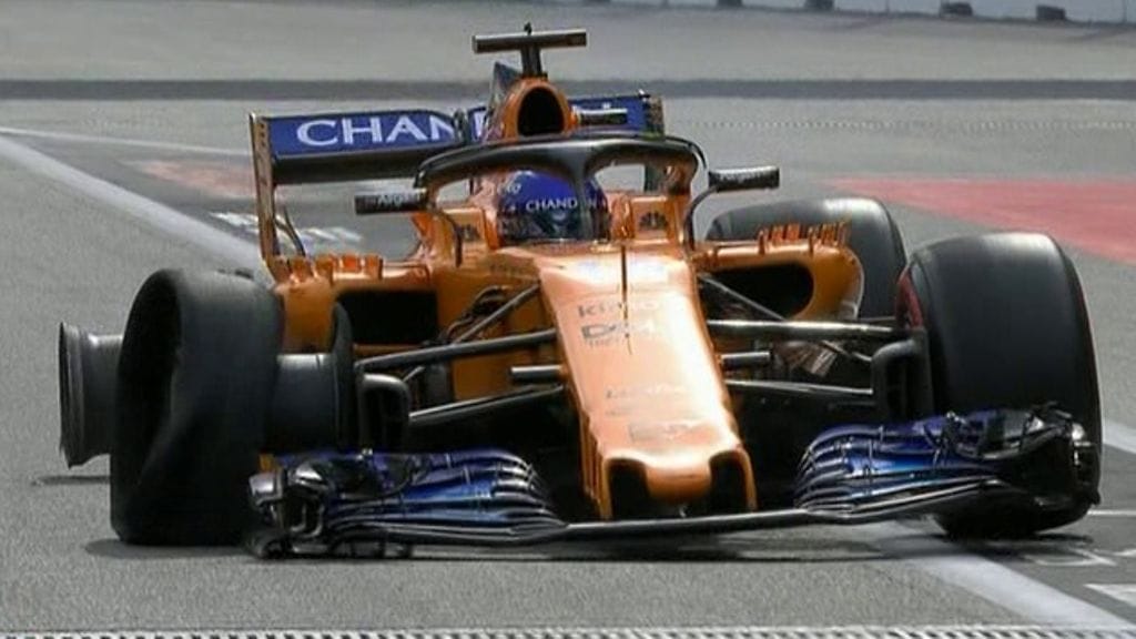 Sirotkinin katsottiin aiheuttaneen kolarin, jossa olivat osallisina myös Alonso ja Renault'n Nico Hülkenberg. Alonso pääsi takaisin varikolle ja nousi kisassa lopulta seitsemänneksi.