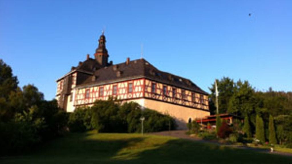 Vallihaudan ympäröimän linnahotellin tarina alkaa jo keskiajalta. Vuosisatojen aikana sitä on muutettu eri tyylisuuntien mukaan, tänä päivänä se edustaa uusgoottilaista tyyliä. Düsseldorf on linnaa lähin kaupunki, jonne Suomesta on suora lentoyhteys.